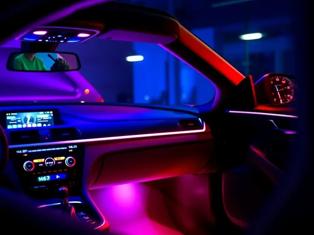 Transform your car's interior with our customizable LED ambient lighting. Create a personalized atmosphere with a range of colors and settings. Enhance your driving experience with style and comfort.